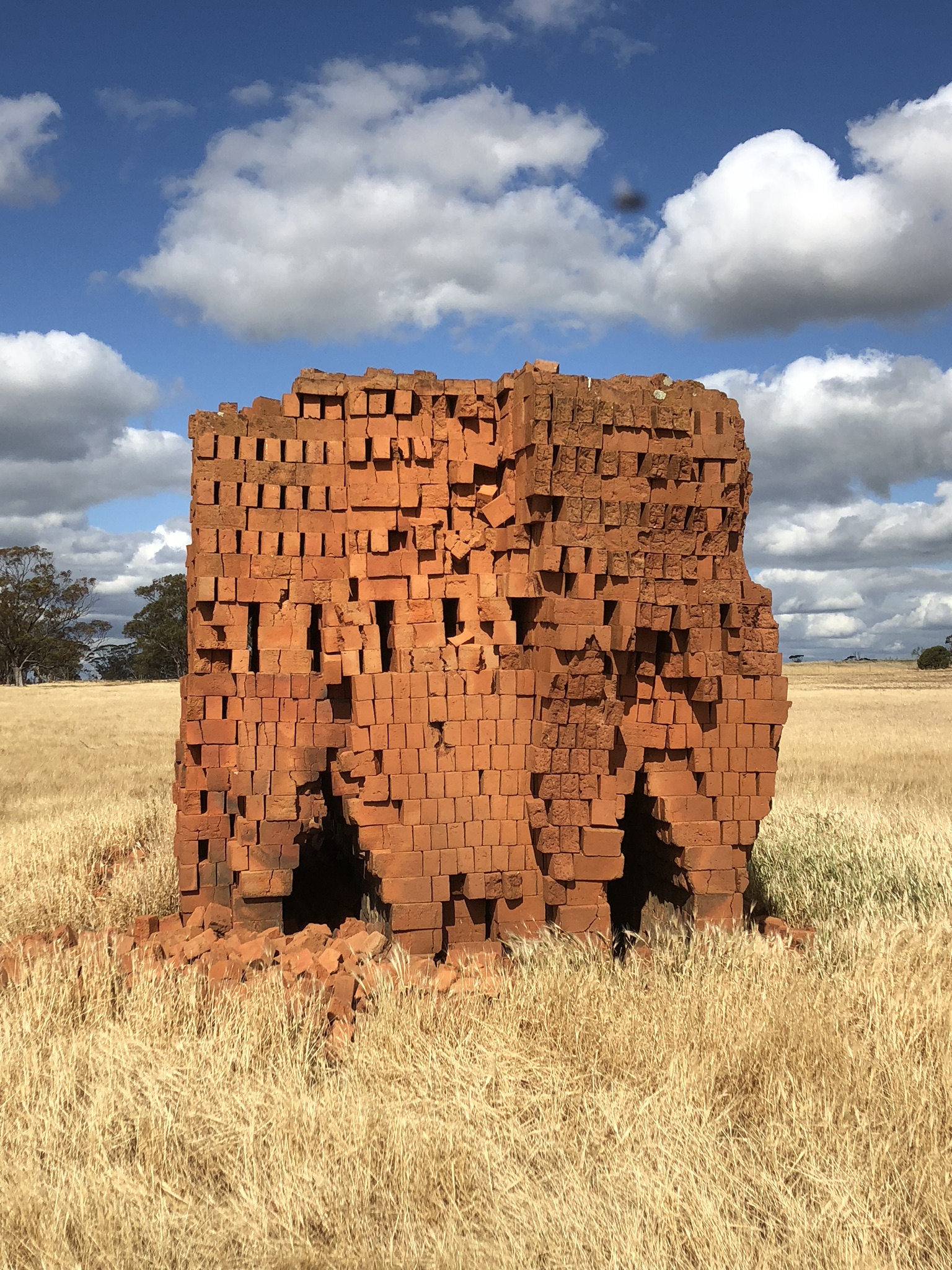 However the builders, for some reason, decided the bricks were not suitable and used cement instead. This brick stack still remains in a paddock. It is considered that this brick stack is historically interesting as it is one of the only surviving brick stacks that demonstrates how bricks were made at this time.
