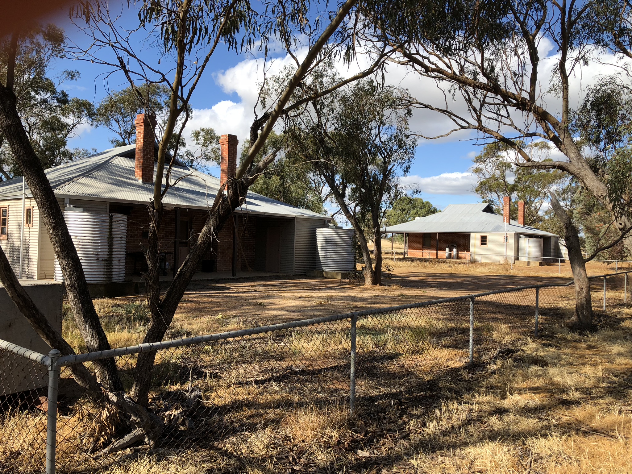 Two identical, two bedroomed brick dwellings with a corrugated iron roof were built. Each building has two corbelled brick chimneys and the dutch gable roof with gablets, spreads to cover the surrounding verandahs. The verandas are supported on timber posts and the southeast and southwest corners have been enclosed with colorbond for the bathroom, toilet and laundry. Entry is via french doors, with decorative brickwork surrounds to the doorway and the main entrance is a single central door on the back verandah. Both houses are surrounded by a metal post and wire fence.