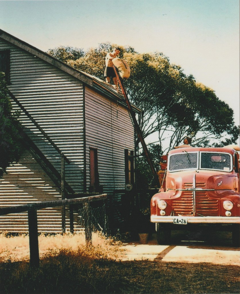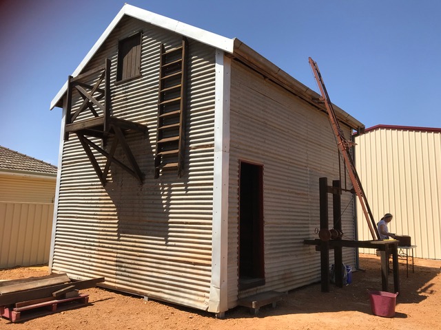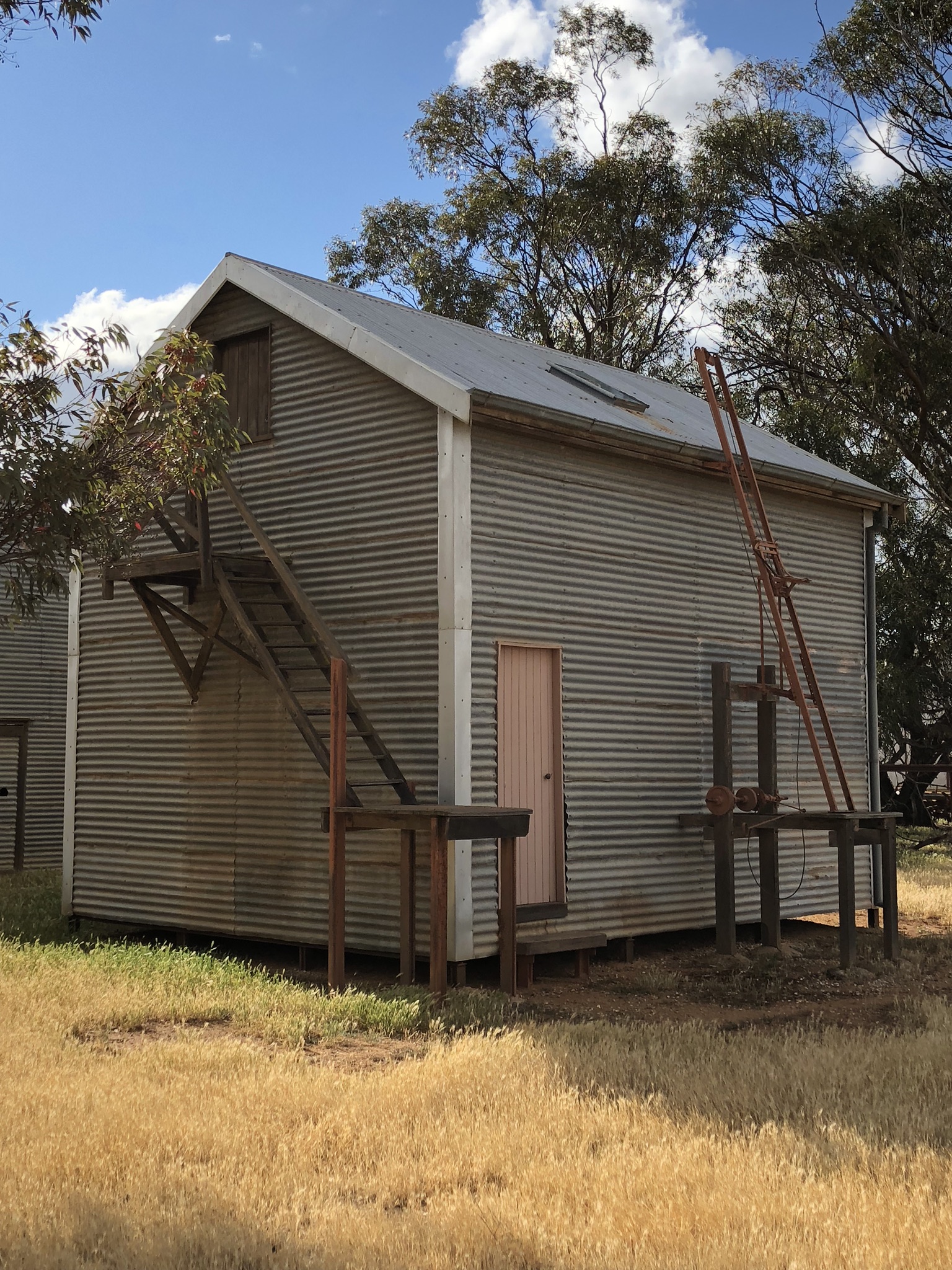 An early example of bulk storage of grain. A small rectangular timber framed corrugated iron building with a timber floor. It held 500 bags – which were originally carried from the wagon up steep steps and emptied through a door near the roof. In the 1950’s a creek bag loader was installed on the east side, which avoided the necessity to carry bags up the steep steps.