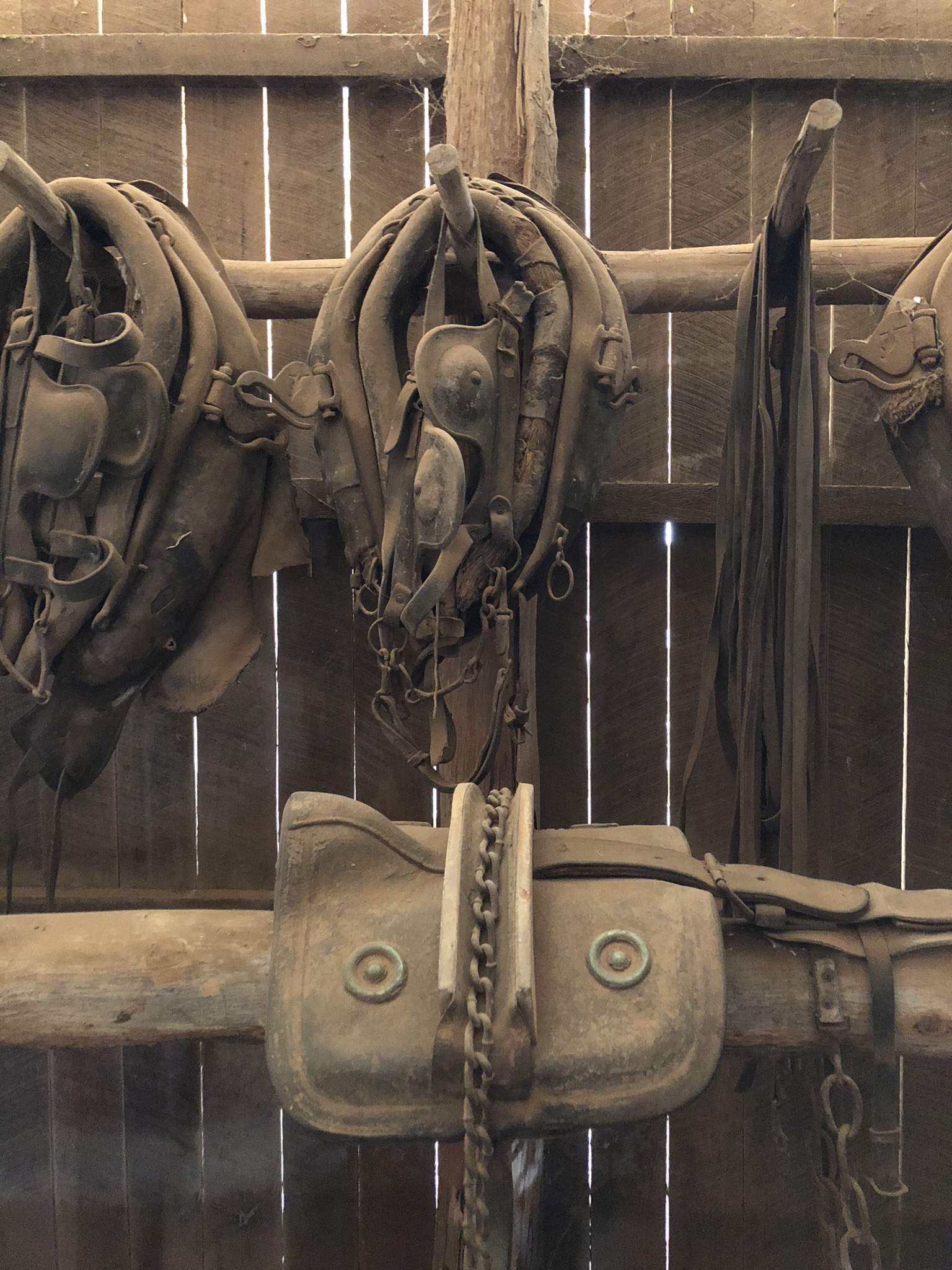 The magnificent New stables originally consisted of hay shed, chaff house, and stables. Construction was of large salmon gum poles, dressed timber, and galvanised iron. Corrugated iron was used for the roof of the building and for the walls of the hay shed and chaff room. Salmon gums and gimlets were used as post and rail fences for the yards around the stables. It was designed with a partition down the middle to stop the wind whistling through and central feeding aisle, with wooden tracks, allowed a trolley to be pushed along to deliver feed to each manager via a sliding access window. The tracks are still in place.