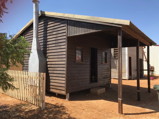 Timber framed with corrugated iron walls and roof, and still used by guests until this day.