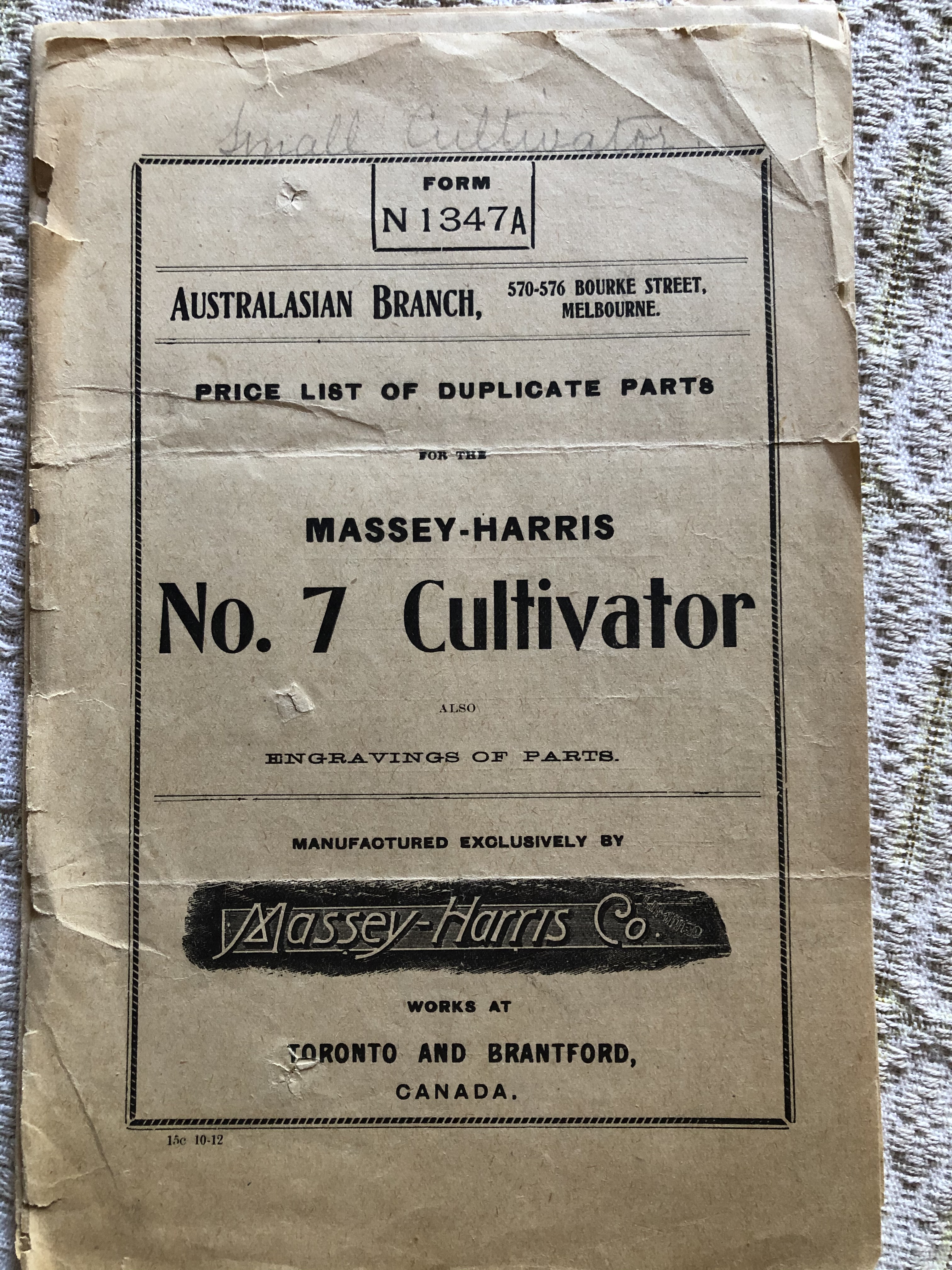 Manufactured in Wagin W.A. Complete with original Maintenance and Parts Book