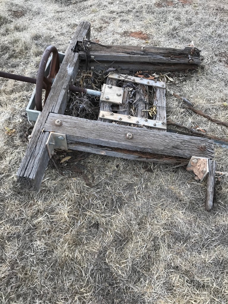 Vintage timber and steel screw sluice gate