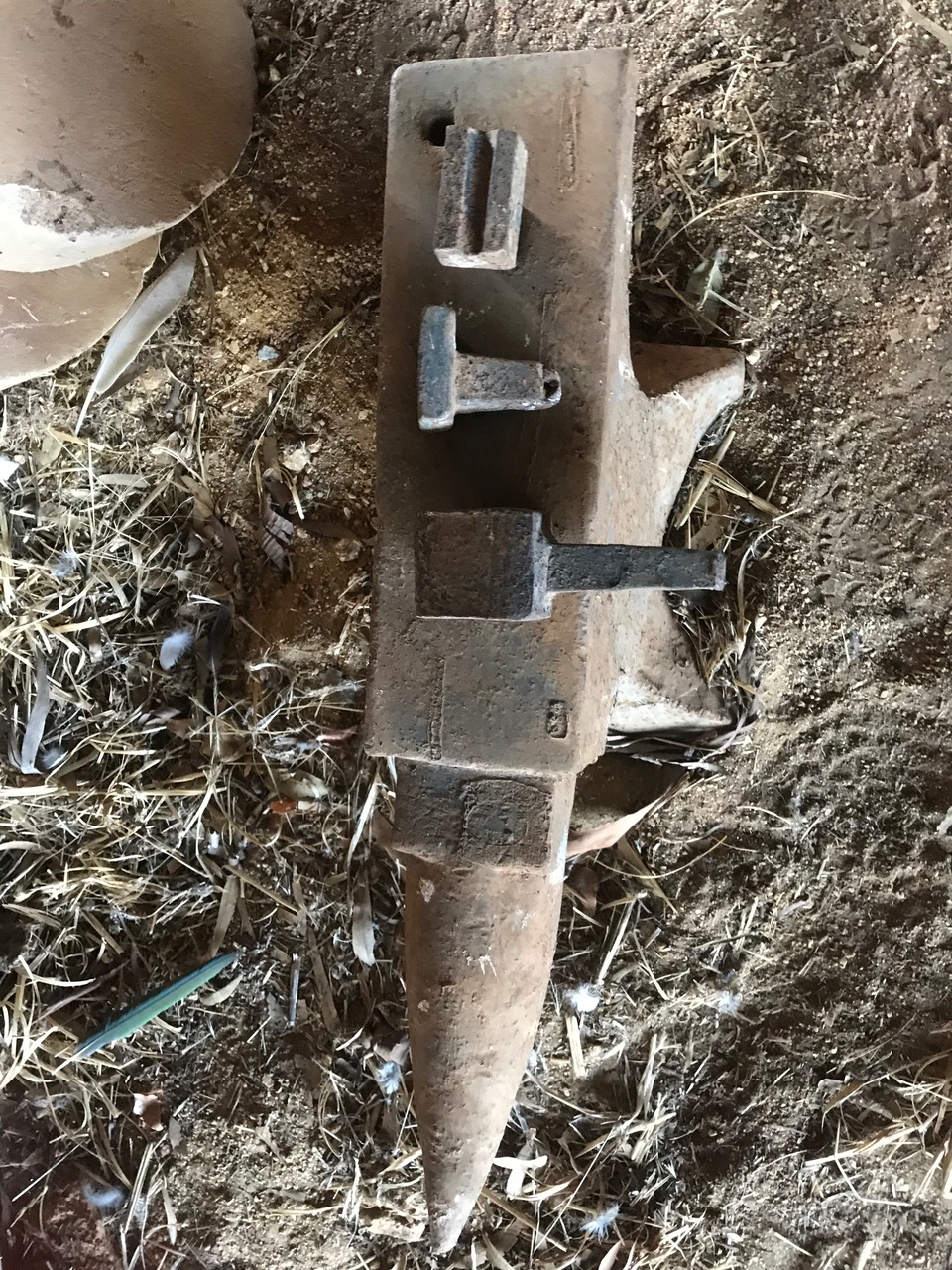 The through-holes are of various shapes and sizes and are used to hold or support a hot bar of metal for further shaping. and striking with a hammer or sledge. Highly collectible. Includes five attachments (see photos)